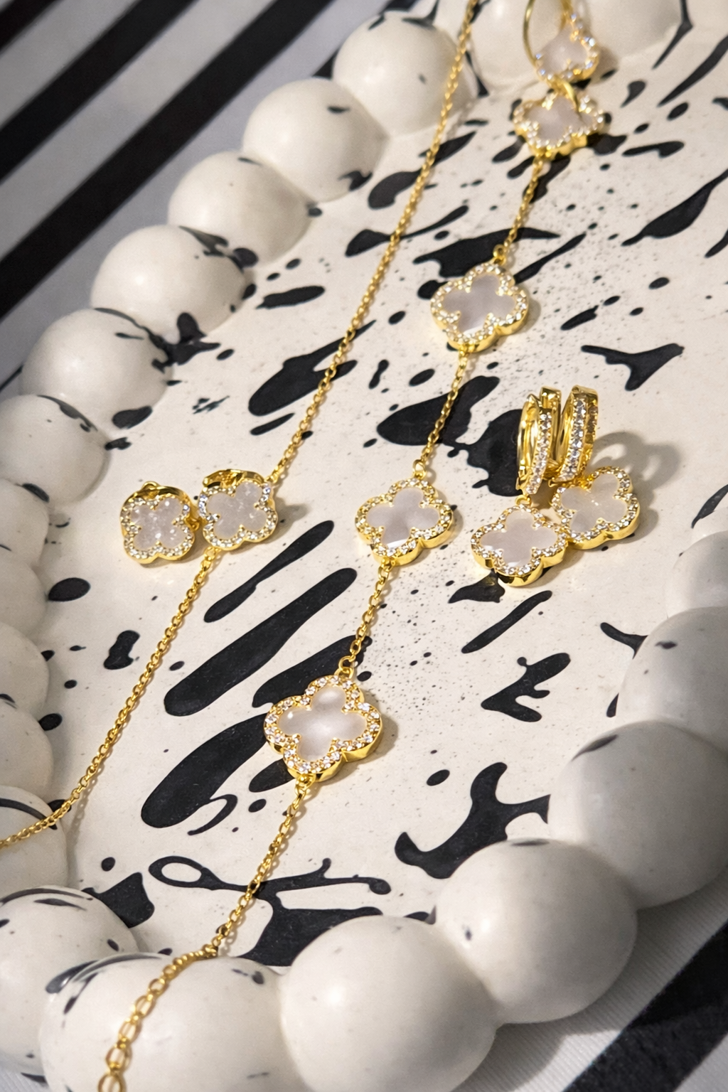 Clover Luxe Bracelet – 925 Sterling Silver 14K Gold Plated with Iridescent Shell