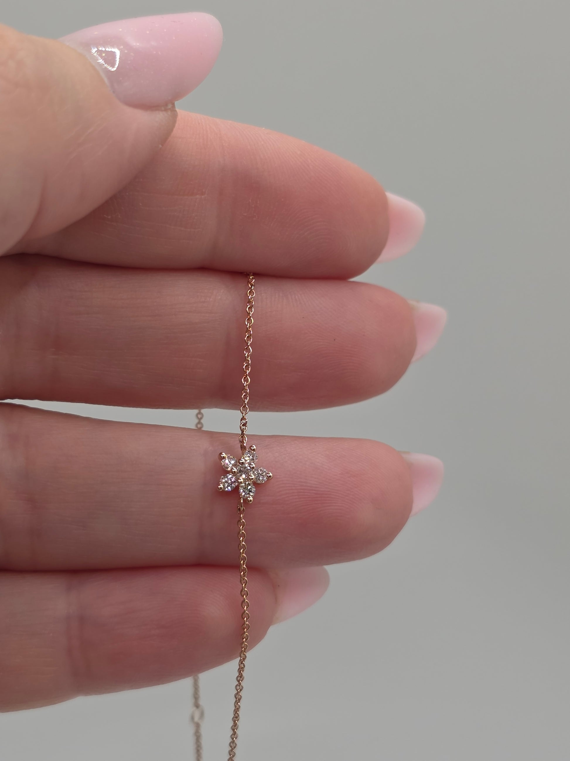 14K Solid Rose Gold Dainty Star Diamond Bracelet