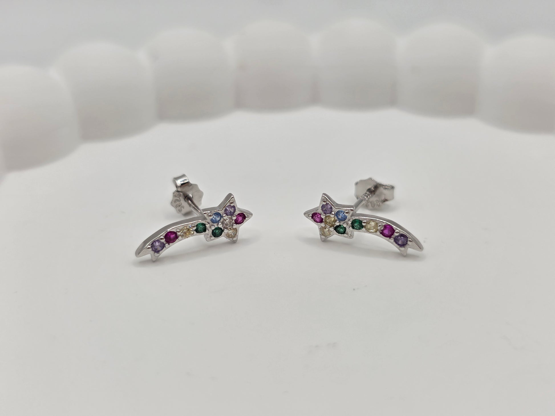 Add a playful sparkle to your everyday look with our Shooting Star Stud Earrings, crafted from 925 Sterling Silver and finished with vibrant rainbow zircon stones. Designed for women, teens, and kids alike, these whimsical earrings make a charming birthday gift or a colourful accessory for school or casual wear.