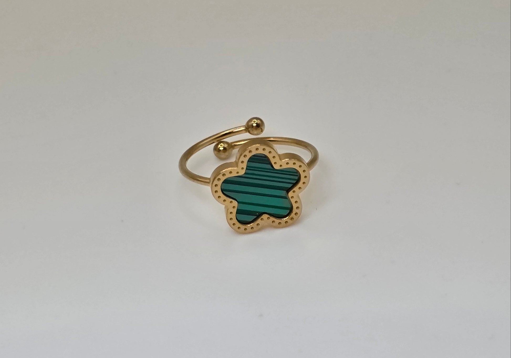 Add a playful yet elegant touch to your look with our Adjustable Flower Ring, available in 5 vibrant colours: royal blue, white, black, pink, and malachite green. Crafted from durable stainless steel and finished with high-quality gold plating, this ring is adjustable to fit most sizes – perfect for everyday wear or as a thoughtful gift.