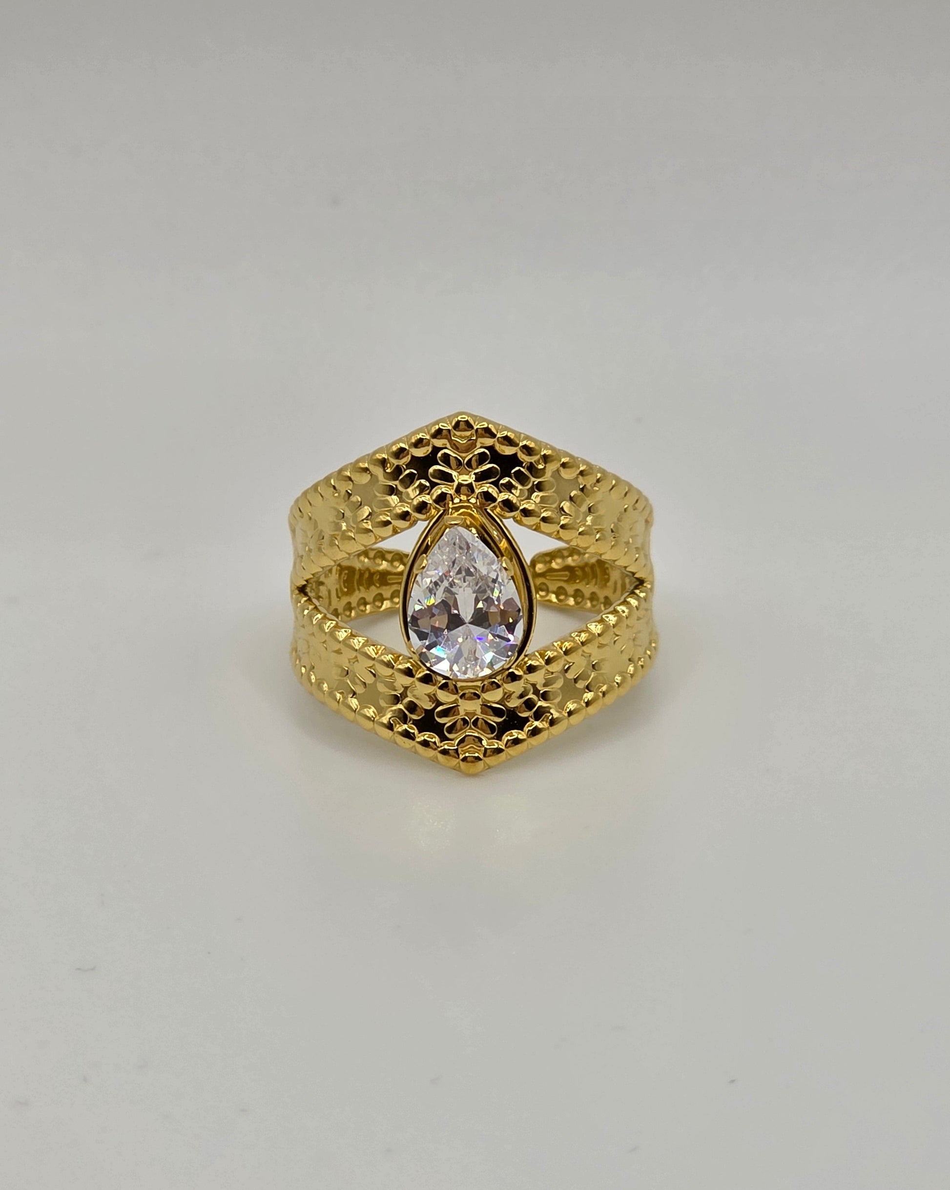 Turn heads with this striking collection of adjustable gold-plated rings, each crafted from durable stainless steel and finished in high-shine 18K gold plating. From modern waves to sculptural florals and statement solitaires, this collection brings a unique twist to everyday luxury.
