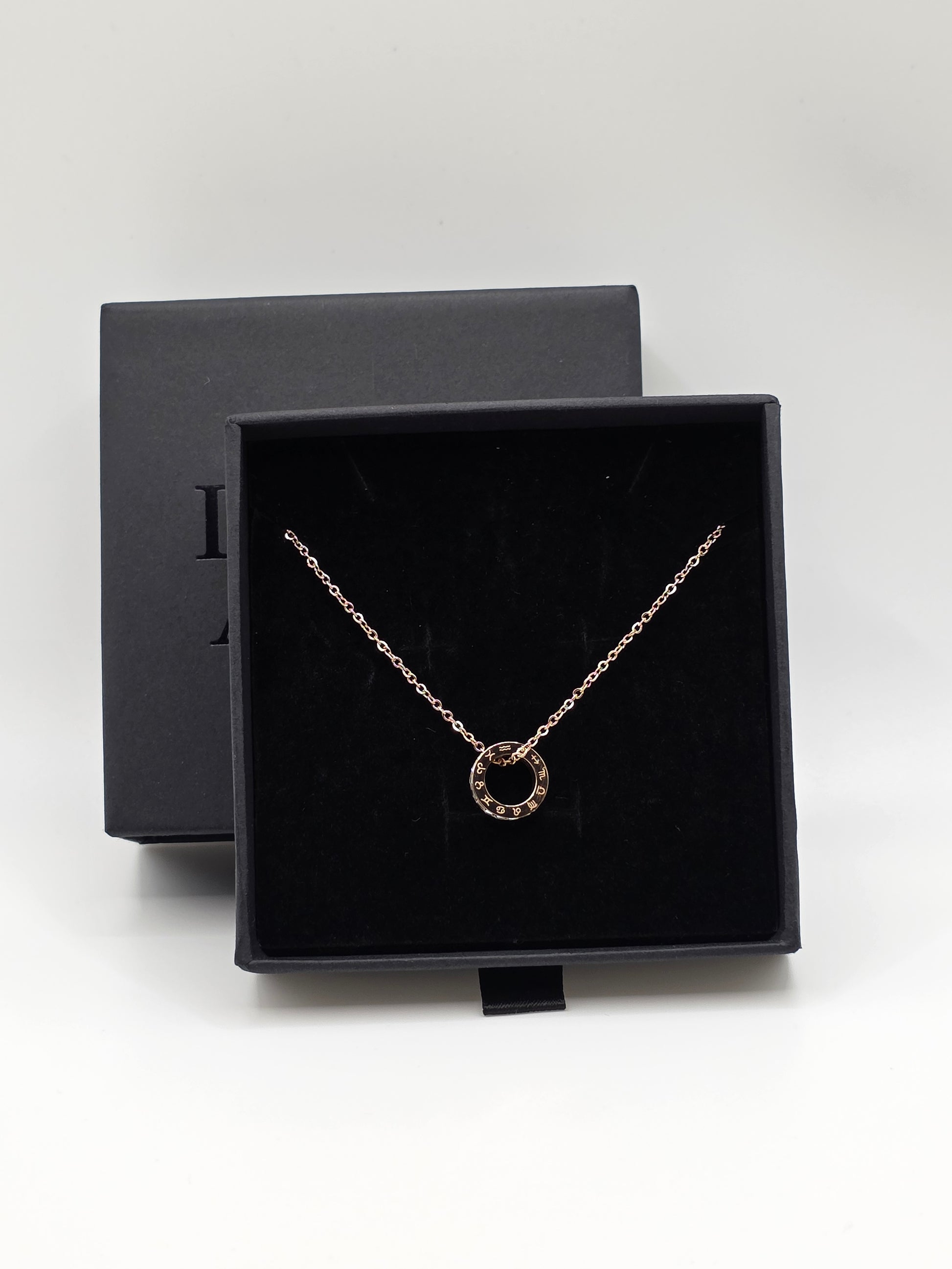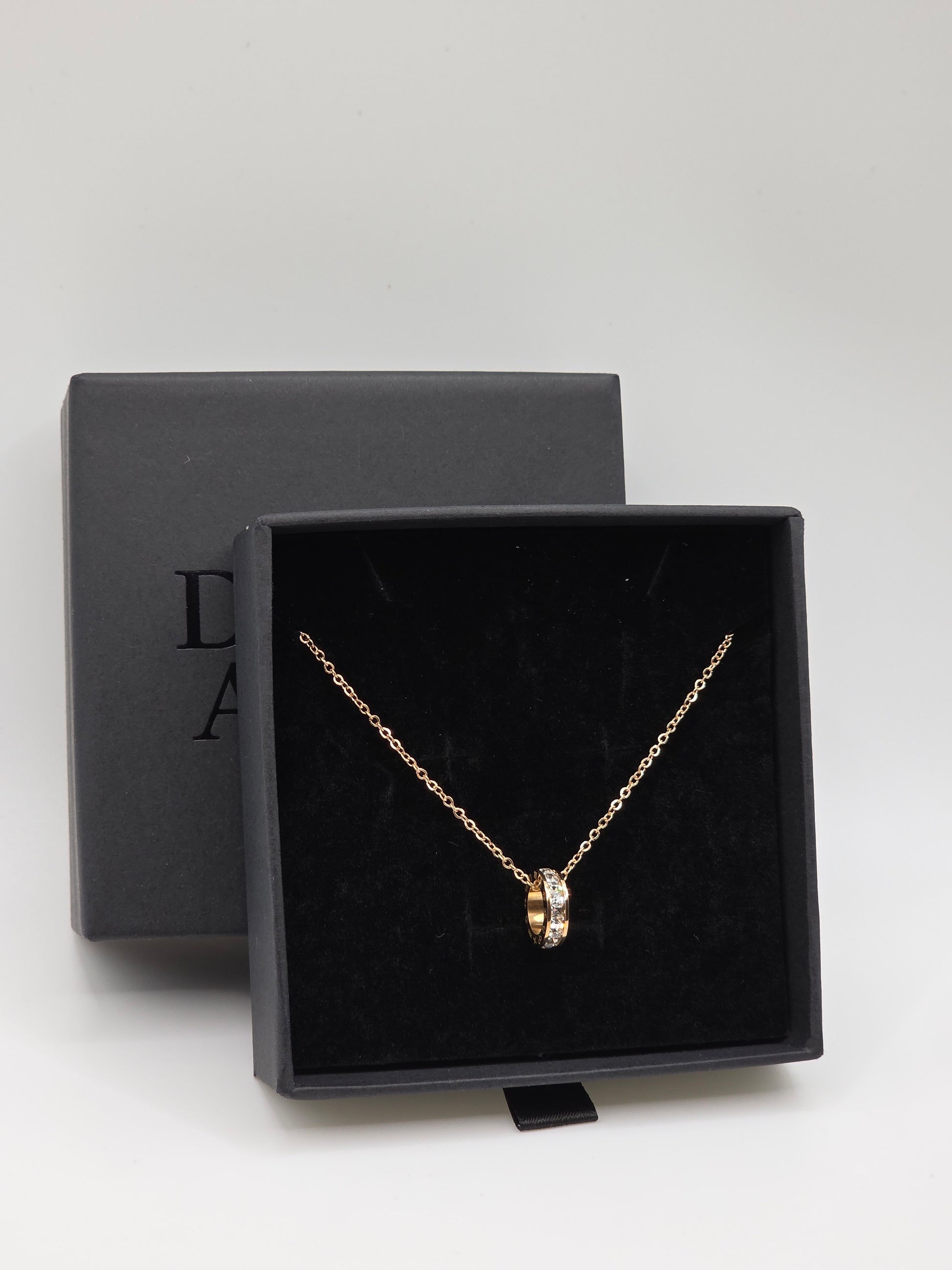 Crafted from durable stainless steel and plated in luxurious rose gold, this zodiac-inspired necklace features a rotating ring pendant engraved with all twelve astrology signs. Subtle crystal detailing adds a touch of sparkle, making it perfect for everyday elegance or gifting to the stargazer in your life.