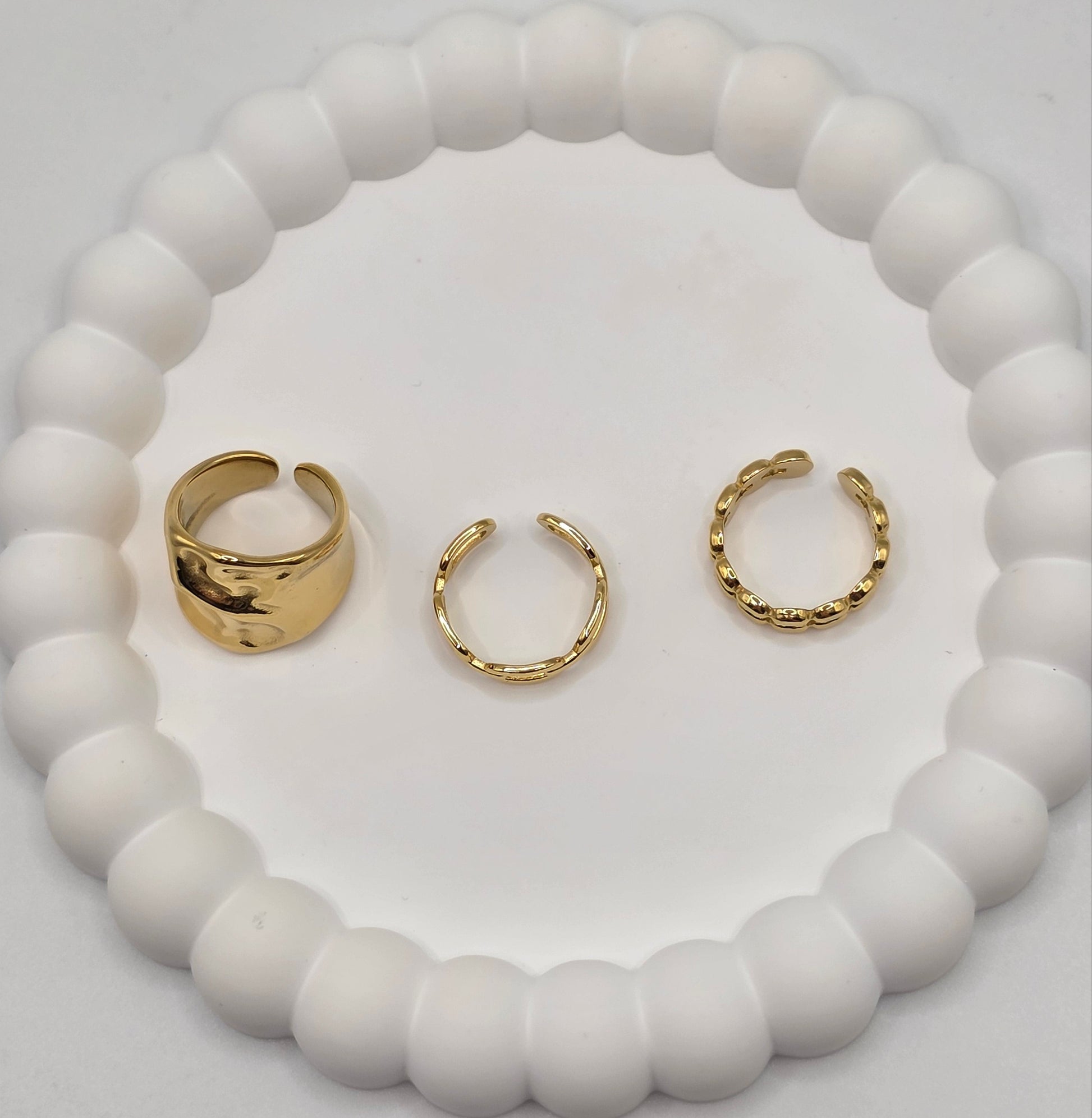 Crafted from high-quality stainless steel and 18K gold plated, these rings are tarnish-resistant, hypoallergenic, and perfect for daily wear.