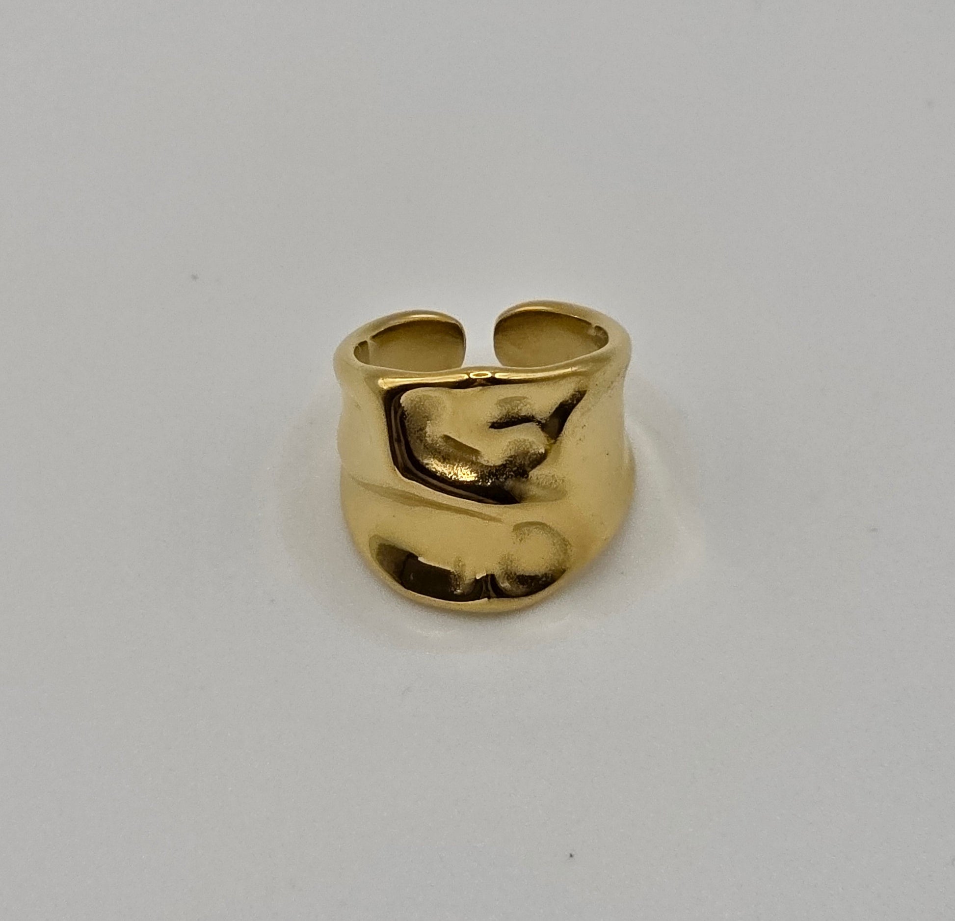 Chunky Molten Band – Sculptural and shiny with a liquid gold look.