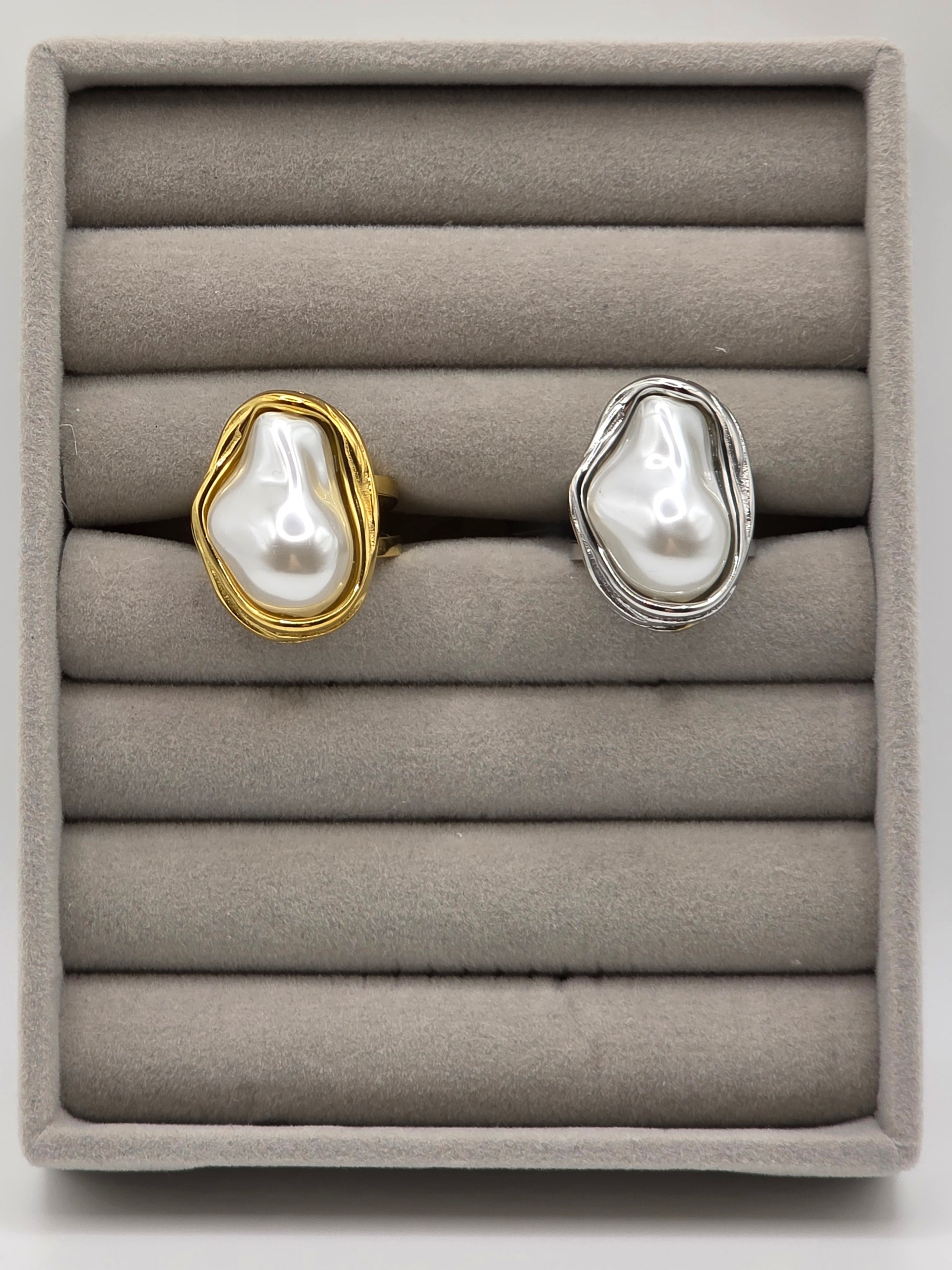 Organic Pearl Statement Ring – Gold & Silver Finish