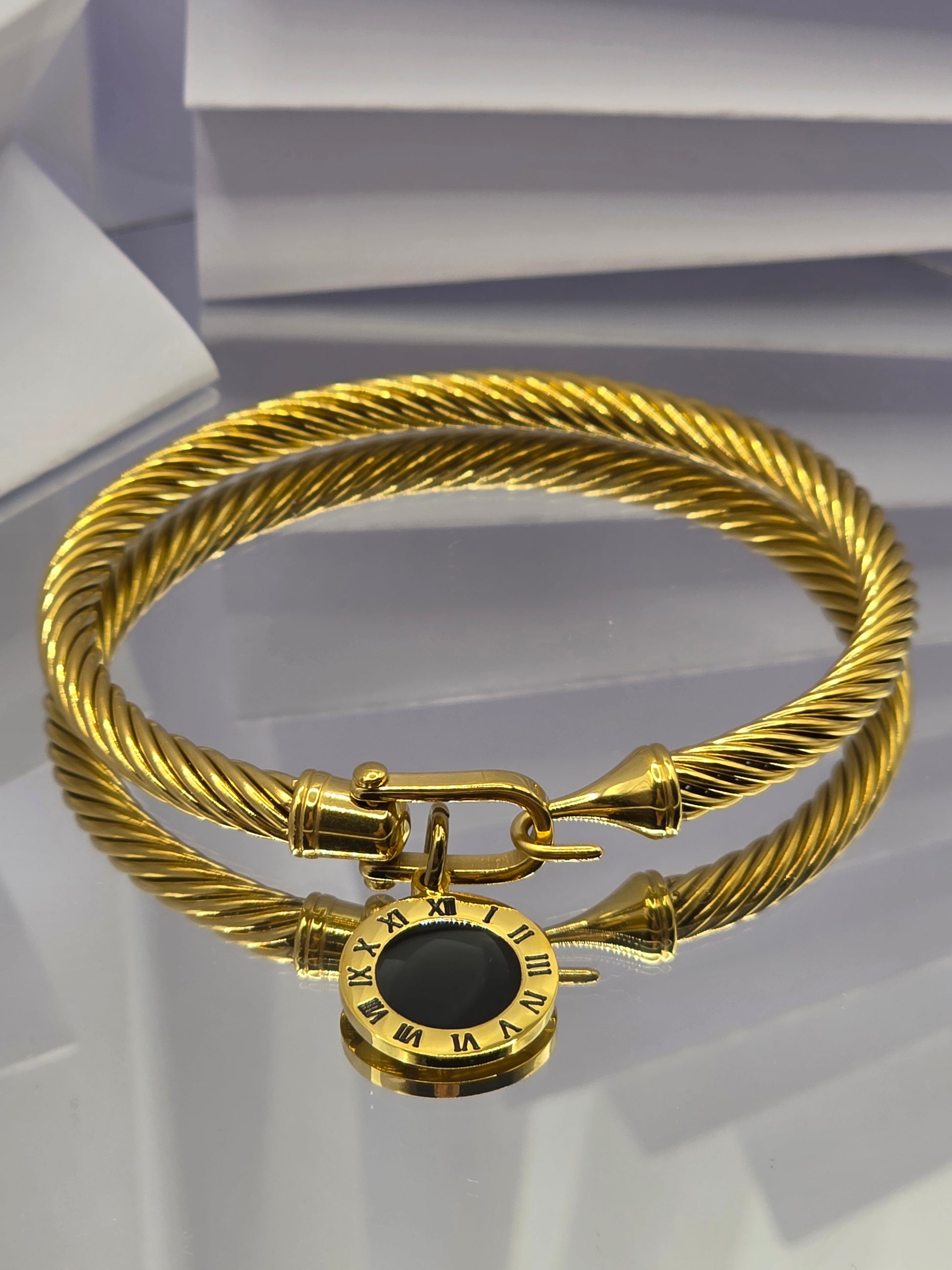 Timeless Cable Bangle – Roman Numeral Charm | Gold Plated